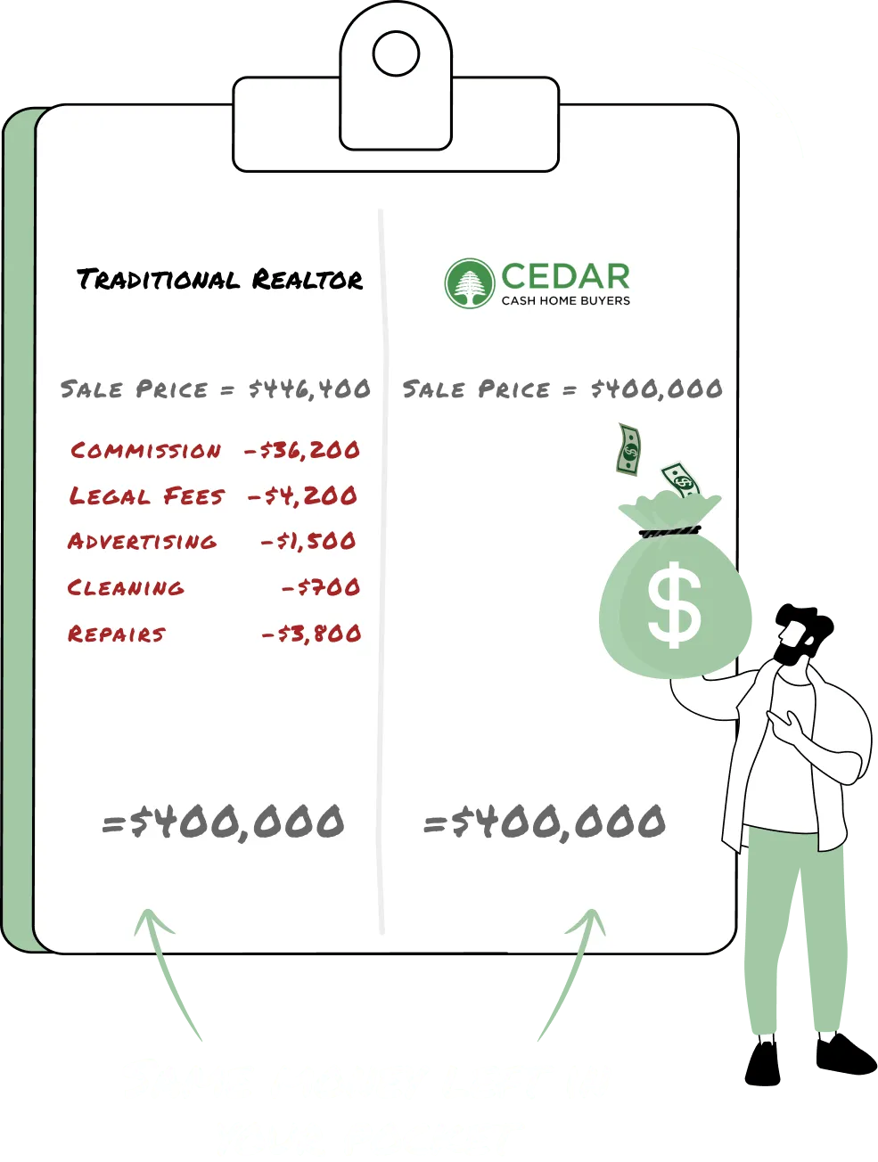 By the time you factor in a realtor, lawyer, advertising, cleaning and repairs, you’ll receive the same money in your pocket from me as you’d get from a traditional sale.