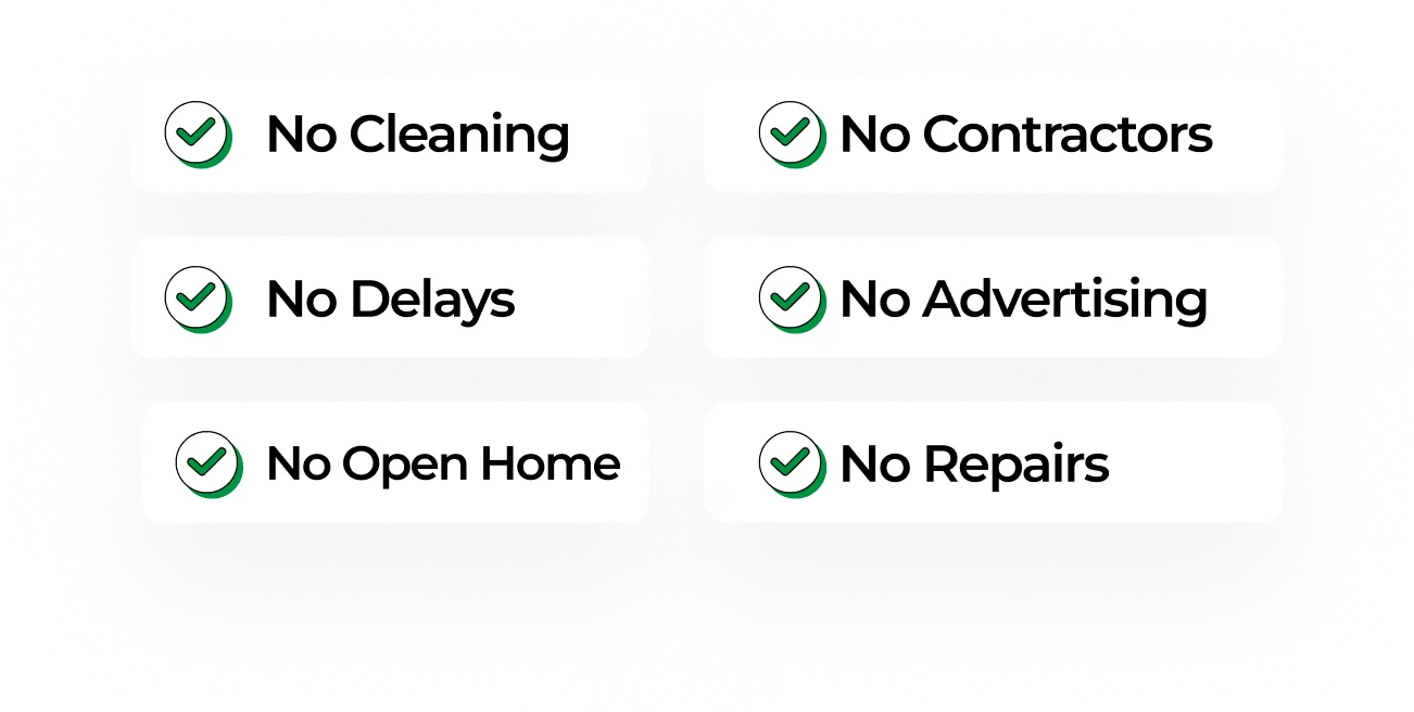 Carpet stains, grimy walls, sticky floorboards, or a fridge full of food… It doesn’t matter how you leave the house, I’ll take it off your hands ‘as is.’